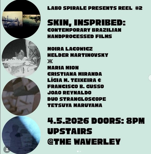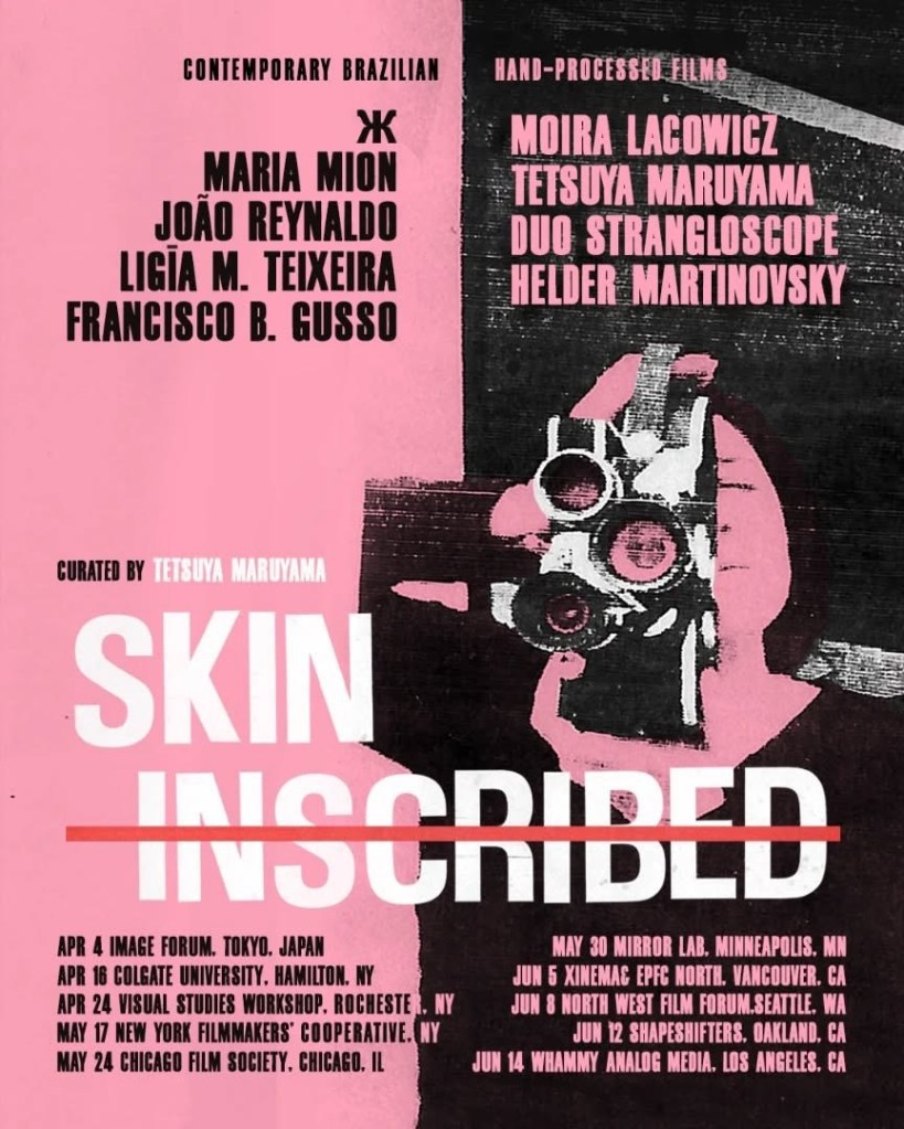 consider Ж, 2024.Program Skin Inscribed- contemporary Brazilian hand processed film’s tour, curated by Tetsuya Maruyama. April to June. Tokyo,Japan;several east and west US cities & Vancouver,Canada.