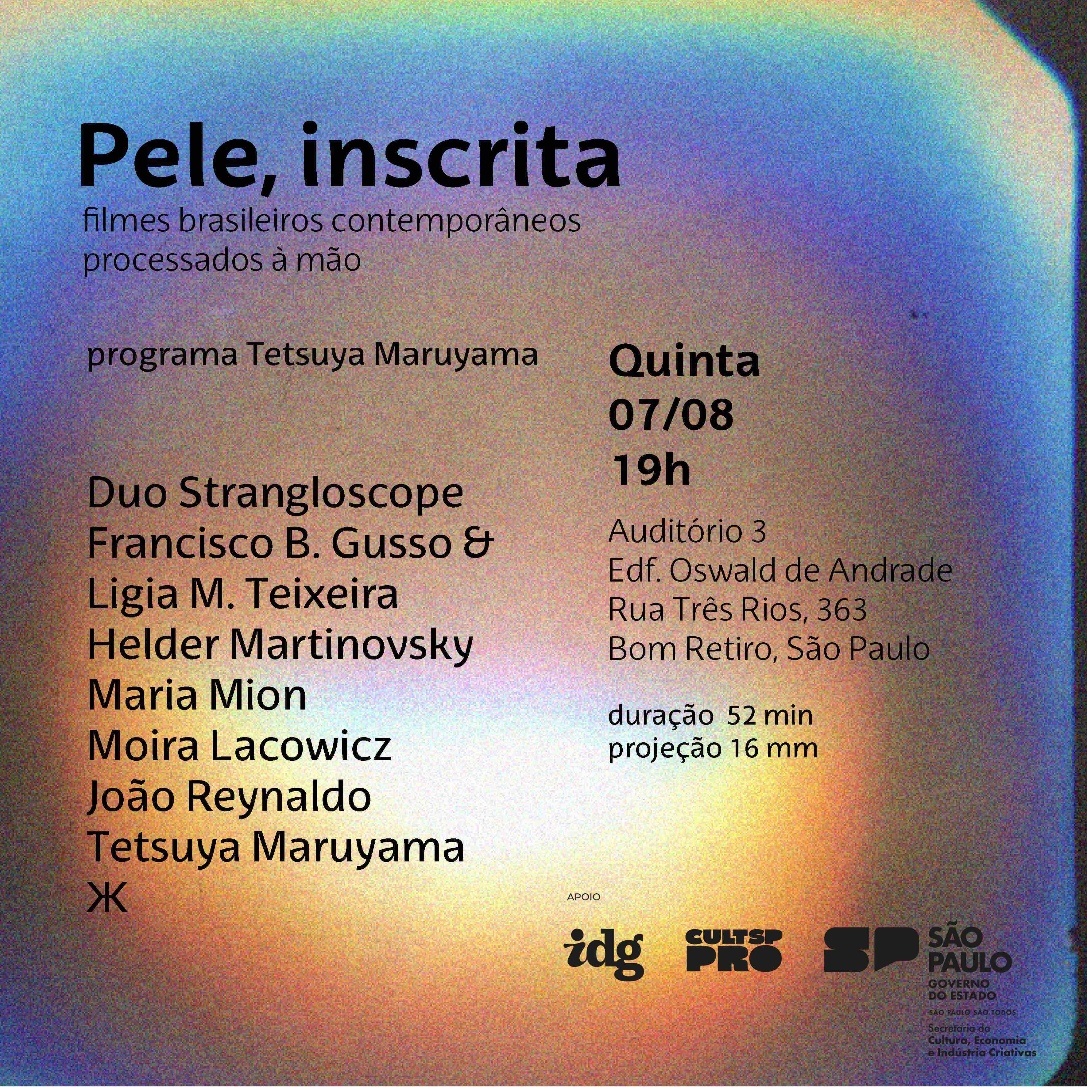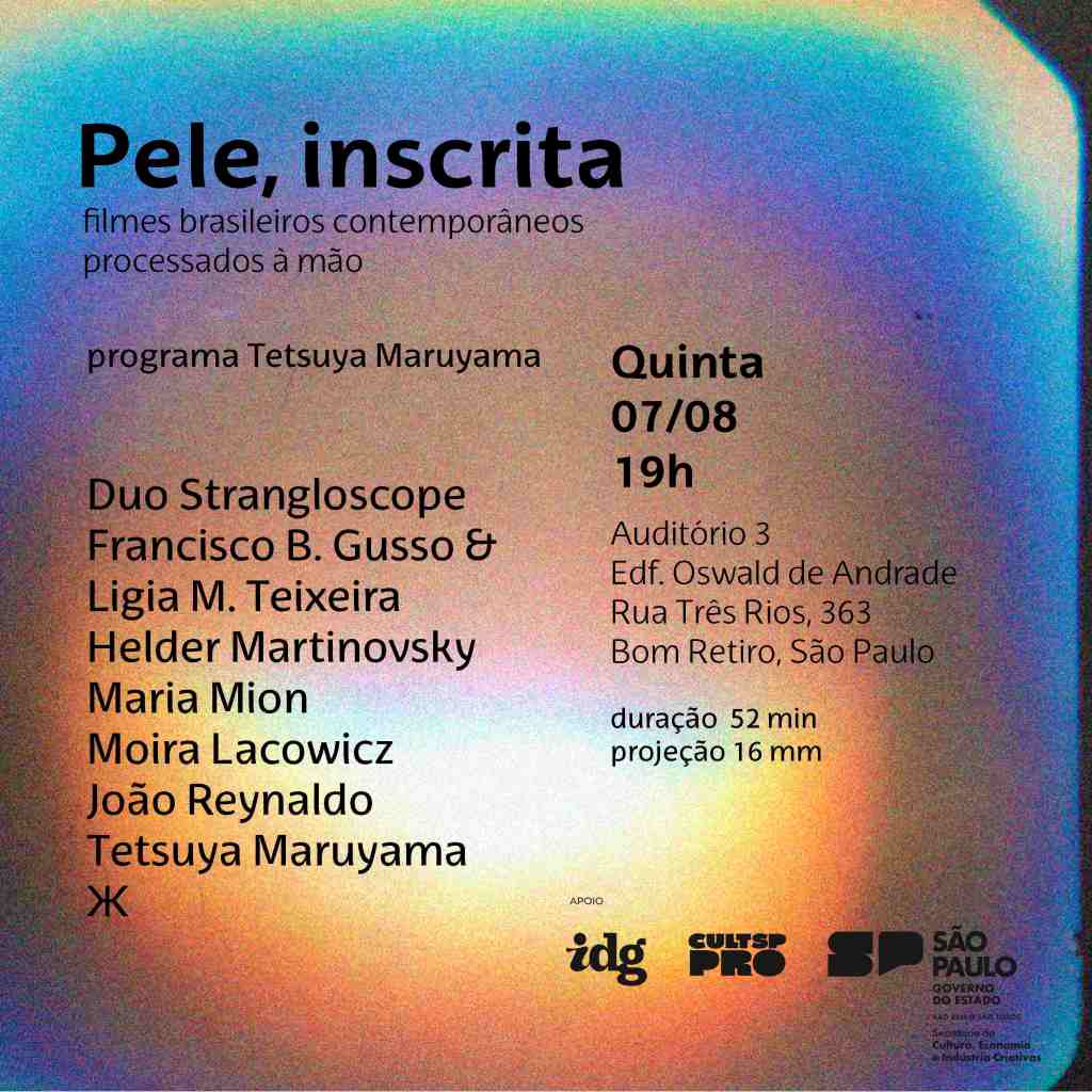 consider, Ж, 2024. Programa Pele, inscrita- filmes brasileiros contemporâneos feitos à mão. curada por Tetsuya Maruyama. 7/08 às 19h.Edf Oswald de Andrade, Bom Retiro, Sampã, Brasil.