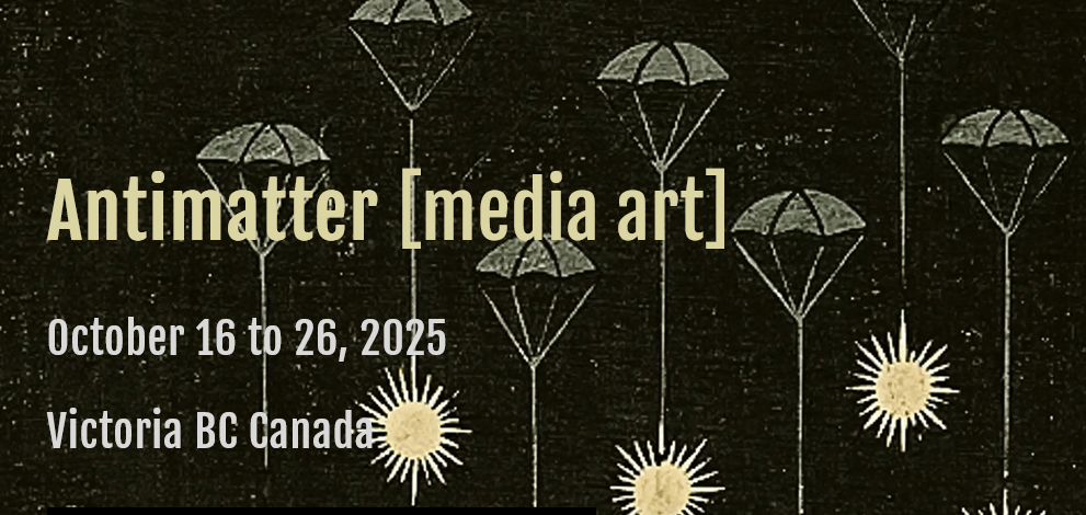 consider, Ж, 2024. Antimatter [media art] Program Moument. Deluge Contemporary Art. curated by Todd Eacrett and Deborah de Boer. 636, Yates Street (near Broad). Friday 17th October 6pm in Victoria, British Columbia, Canada. Online free screening (24 hours) Saturday 18th October.