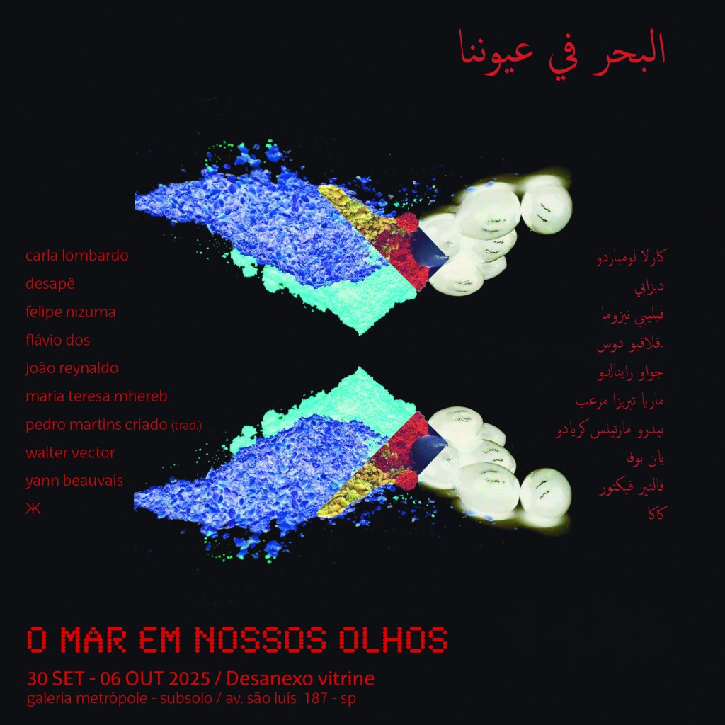 consider, Ж, 2024. O Mar em Nossos Olhos |البحر في عيوننا | The Sea in Our Eyes. 30 Setembro a 6 Outubro Desanexo Vitrine (Desapê), subsolo Galeria Metropole, Centro São Paulo