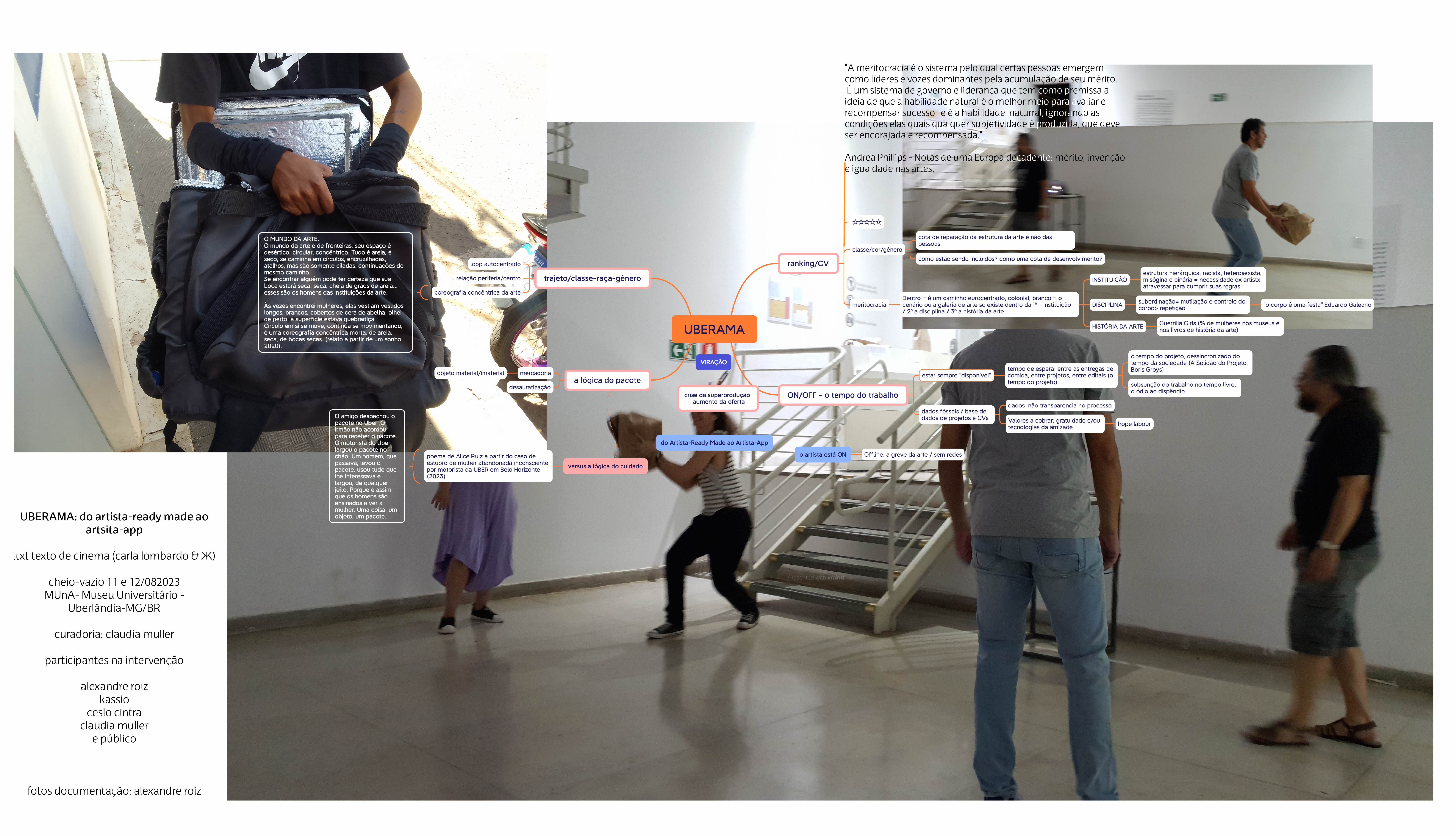 Formando parte da ocupação cheio-vazio no MUnA em Uberlândia, organizada, e curada pela artista Claudia Müller a .txt (Carla Lombardo & Ж) realiza a oficina-interação UBERAMA, do artista ready made ao artista app.